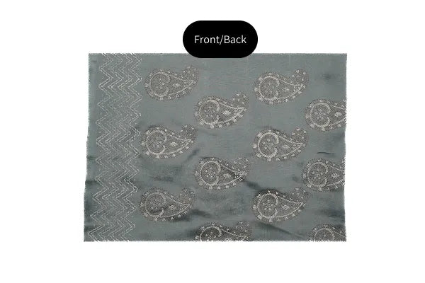 The delicate white and gold block printing brings timeless charm to the cool ice blue base. Making it the perfect choice for both daytime events and evening get-togethers as well. So if you’re dressing up for