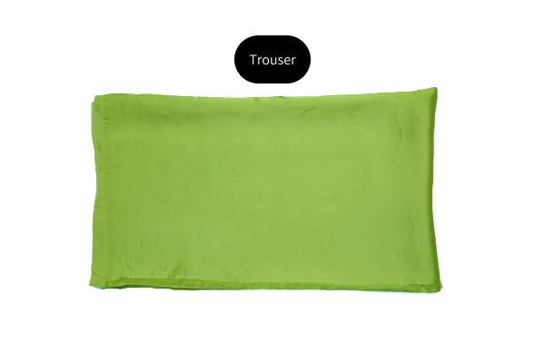 This is an unstitched lime green silk suit. Please note that laces are not included.