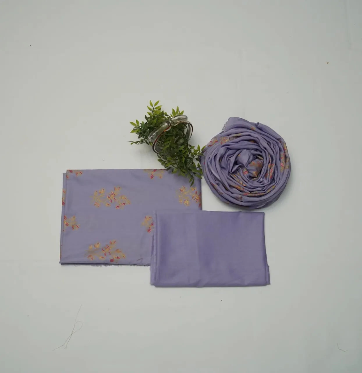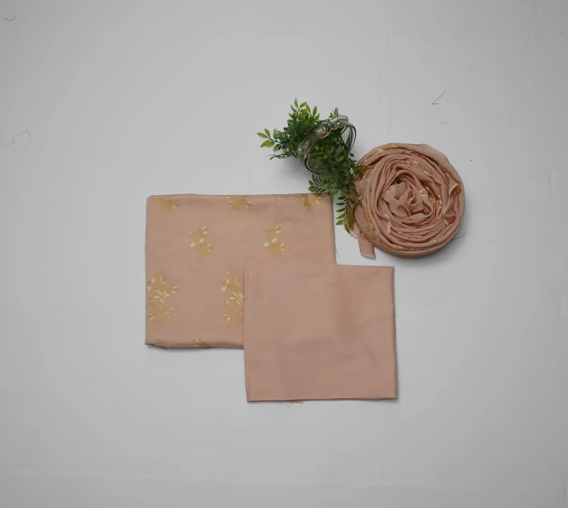Three-piece suit, made from premium quality pure lawn. It features colorful and gold screen printing on the shirt and dupatta. This three-piece suit includes a screen-printed shirt, a matching premium quality silk dupatta and a plain shalwar.