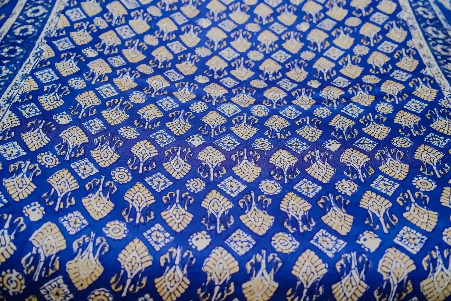 This block printed silk shawl is one of those classy ones you’ll find yourself reaching for again and again. The vibrant blue colour can enhance the look of even a simple, plain outfit.